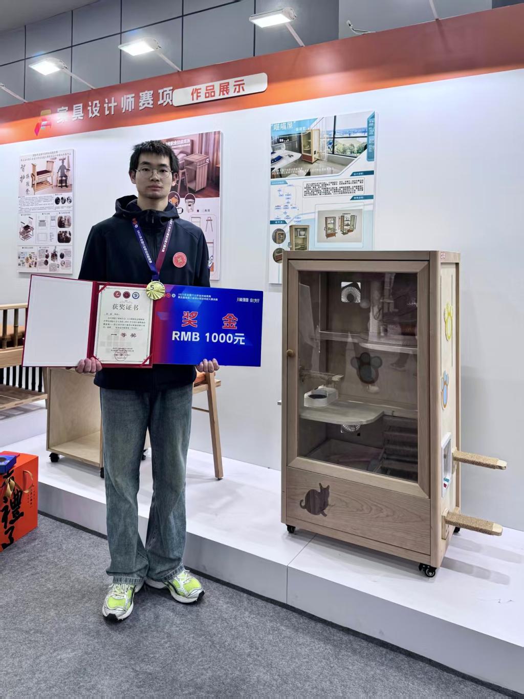 这是我校家具设计与制造专业连续第二次问鼎此项全国一类赛事一等奖,彰显了该专业在创新型、应用型家具设计人才培养方面的雄厚实力与深厚积淀。这一成绩不仅是个人的荣耀,更是我校长期坚持“以赛促教、以赛促学、赛教融合”,深化教育教学改革,注重学生实践能力与职业素养培育的丰硕成果。
