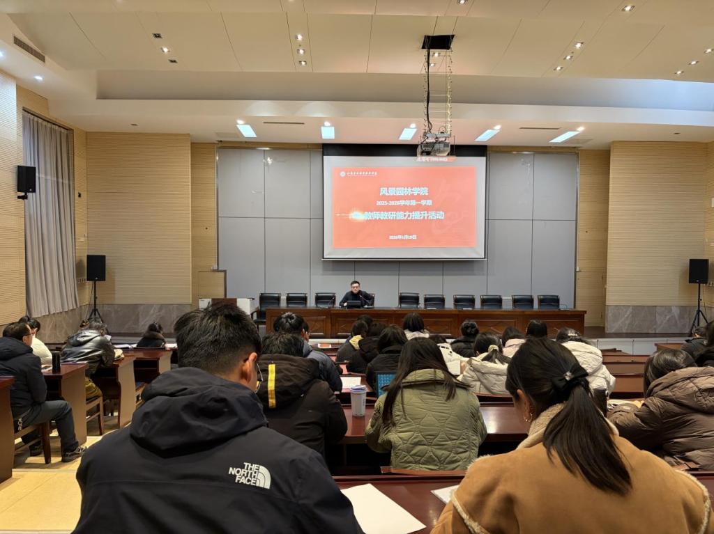 1月19日,风景园林学院在研发楼报告厅组织开展教师教研能力提升活动。活动由副院长方应财主持,园林系、林草系全体教师参加。