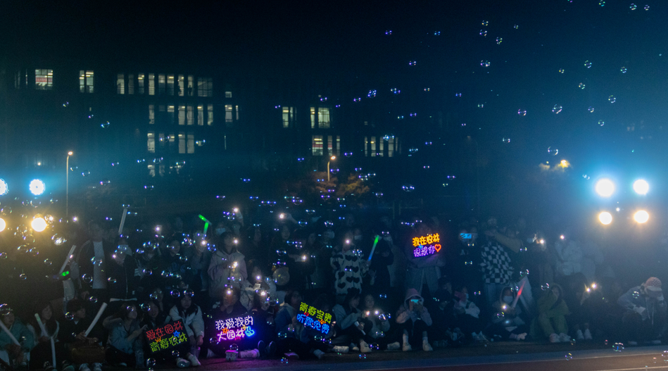 开场舞《面纱》以青春洋溢的舞姿燃爆全场,紧接着一首《海阔天空》带同学们领略音乐之美。皓月当空,草地与音乐相伴,同学们席地而坐,大家挥舞着荧光棒,身体随歌声摇摆。同学们用饱满的热情,动听的歌声,为大家带来听觉盛宴。一首首青春之歌响彻夜空,同学们沉浸在歌声的海洋里。活动中场还穿插了游戏环节,邀请现场观众上台互动,笑声、掌声、欢呼声不绝于耳。