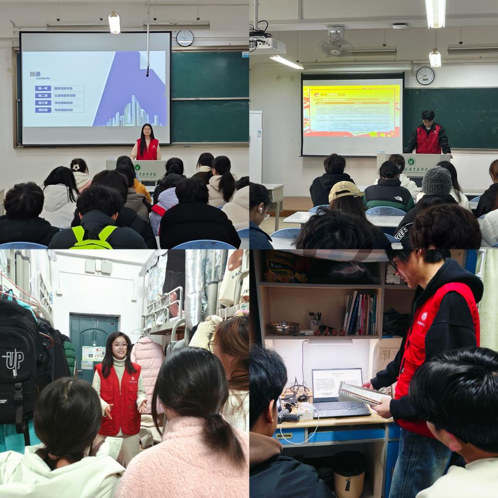 进班宣讲,助力学子燃希望。12月14日-18日,我院新聘任学生资助大使深入大一新生4个班级、23个宿舍进行了国家资助政策宣讲。大使们通过PPT讲解、发放宣传手册向同学们详细讲解了“奖、助、贷、勤、免、补”六位一体资助体系,重点介绍了国家奖学金、国家助学金、生源地信用助学贷款、勤工助学等各类资助政策及申请流程。