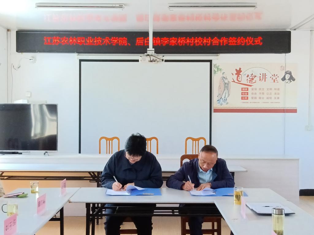近日,江苏农林职业技术学院与后白镇李家桥村签订校村合作协议。风景园林学院党总支书记熊伟,副书记、院长刘玉华,后白镇镇长徐哲迅,李家桥村党总支书记张冰、副书记杨载勇等出席签约仪式。今后,校村将本着“优势互补、互惠互利”的原则深度合作,进一步发挥学院的科技教育、人才优势和后白镇李家桥村的区位、资源优势,促进科教合作与富民增收。