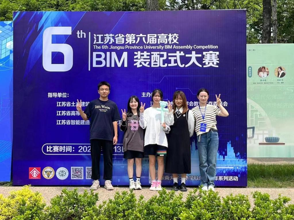 5月13日,由江苏省土木学会教育工作委员会与东南大学联合举办的“江苏省第六届BIM装配式大赛”在东南大学举办,我院郭婳婳、王剑、徐文娟老师指导的21工程造价专业四位同学(共两支队伍)经过两个多月的刻苦训练,最终以总成绩第一和第六荣获BIM数字化应用技术组高职组一等奖和三等奖,实现我院在BIM比赛获奖零的突破。