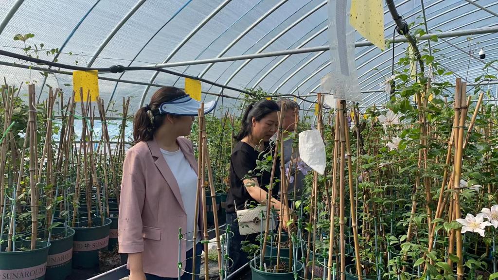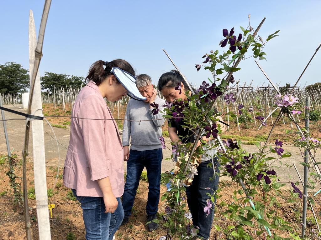 5月23日,江苏省中国科学院植物研究所观赏植物研究中心副研究员王鹏、李林芳一行来我院铁线莲属植物良种选育基地考察交流,并就铁线莲属新品种培育的关键技术及联合科研项目攻关等问题展开研讨。风景园林学院王磊博士、宋微博士、刘换换博士等负责接待。
