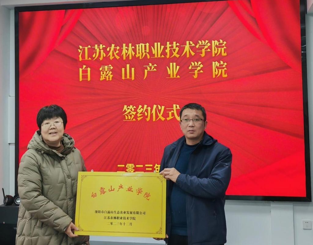 12月15日,我院与溧阳市白露山生态农业发展有限公司共建白露山产业学院签约挂牌仪式在研发楼A308会议室举行。风景园林学院院长刘玉华,溧阳市白露山生态农业发展有限公司副总经理陈小波以及相关专业教师出席签约仪式。