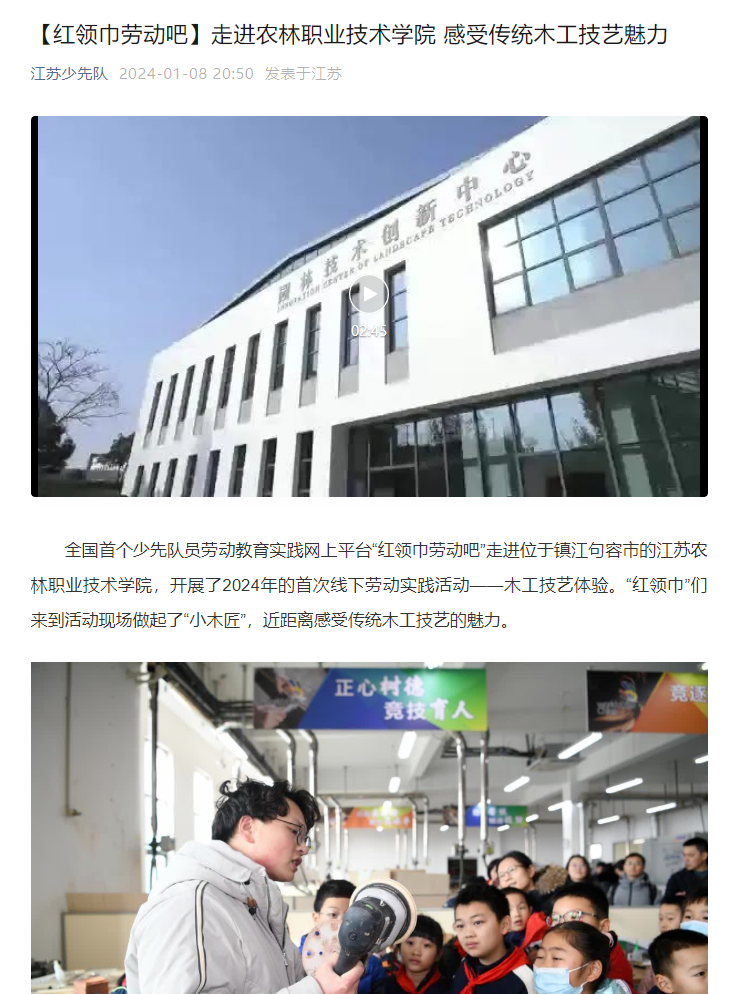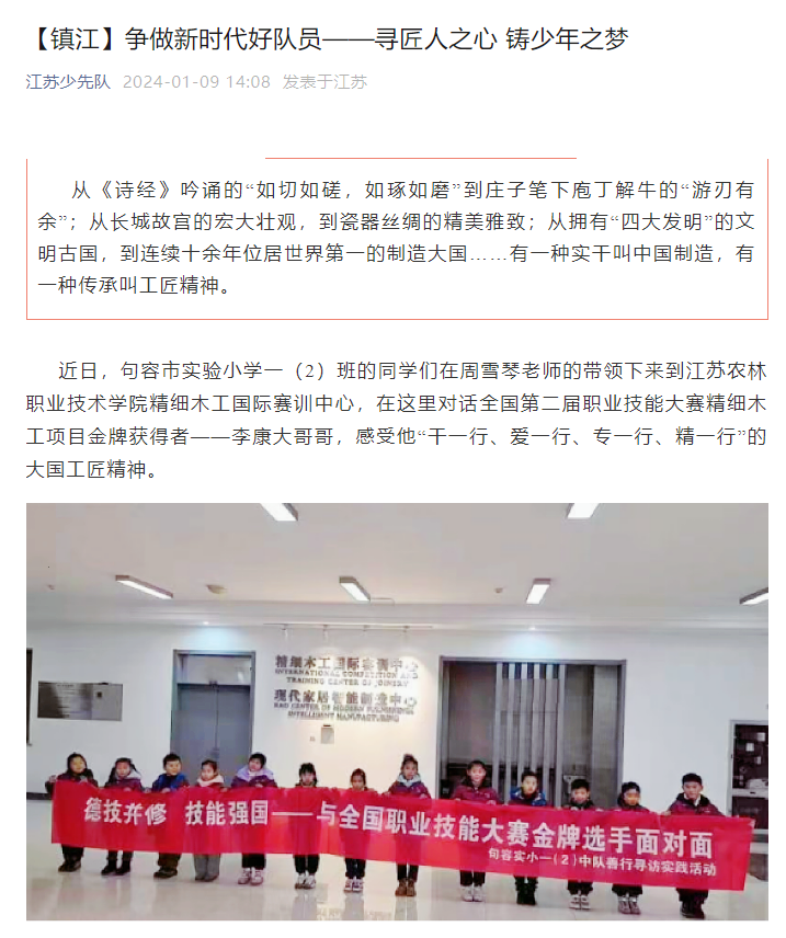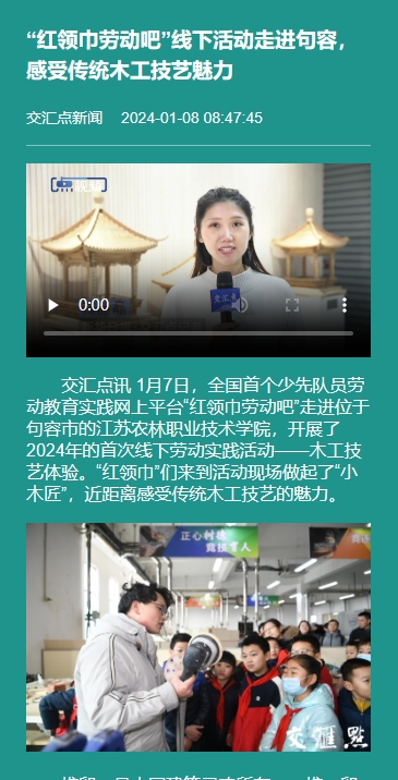 报道链接:交汇点 “红领巾劳动吧”线下活动走进句容,感受传统木工技艺魅力 (xhby.net)