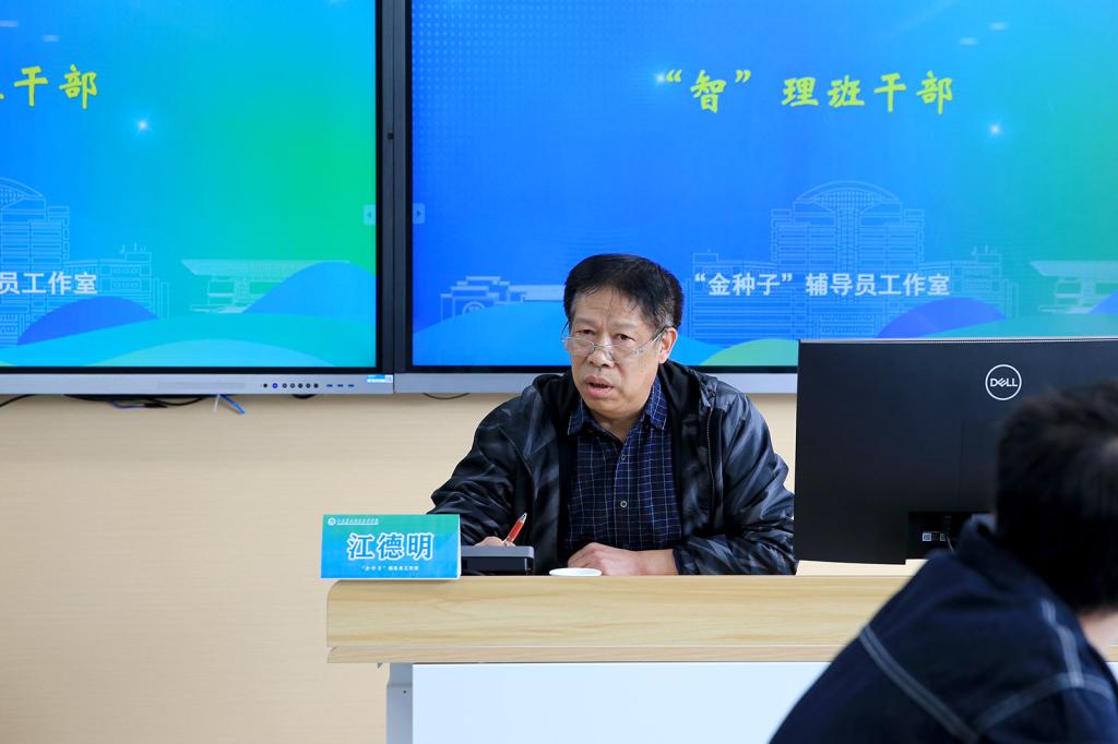 “智”理班干部。江主任任教40余年,具有丰富的学生工作和团队管理经验。培训中,他首先向所有奋斗在一线的班主任、辅导员致以敬意,随后,他详细说明了辅导员们的职责和使命,用实际案例和班主任们一起探讨如何做一名合格的人生引路人。