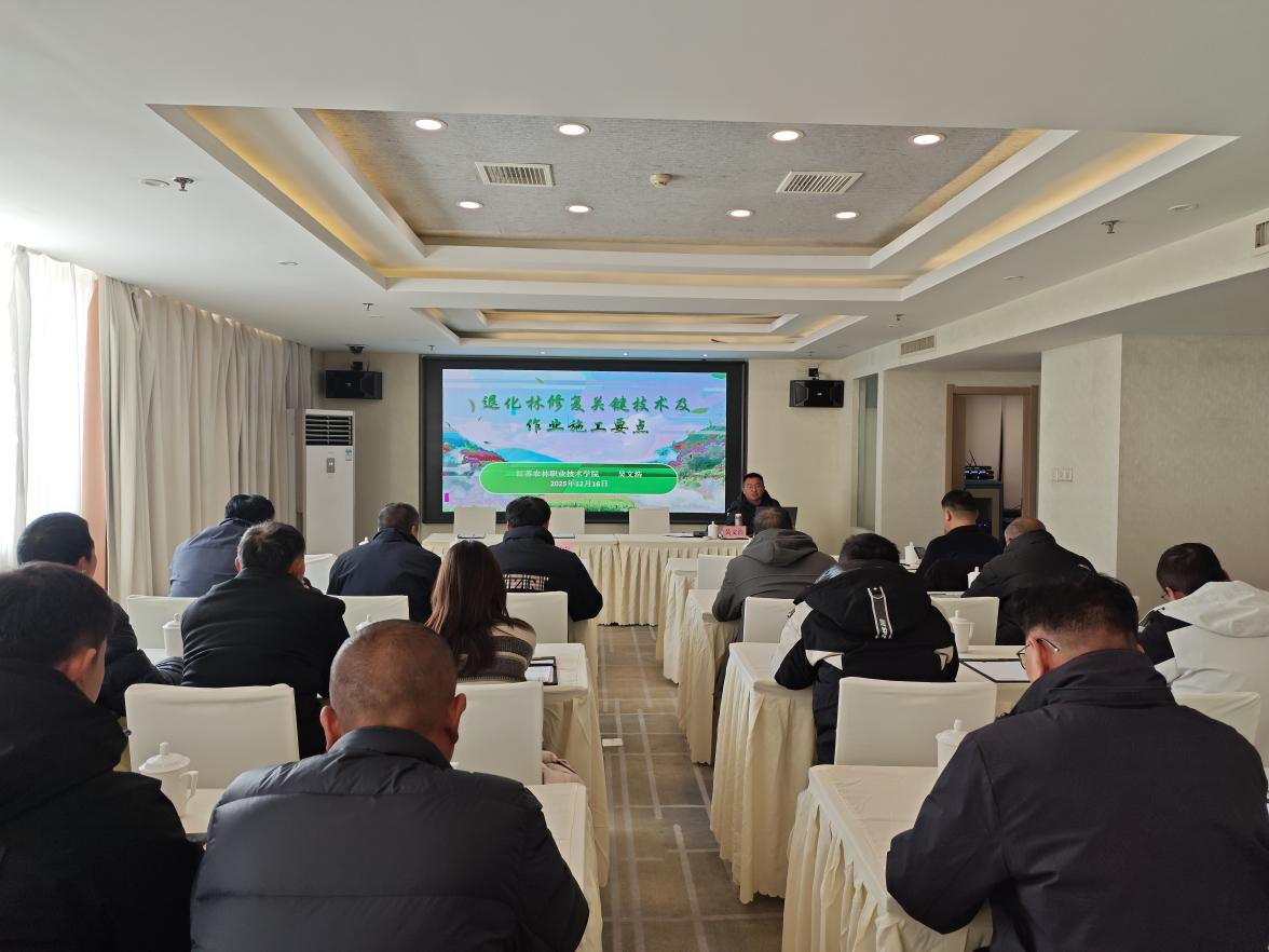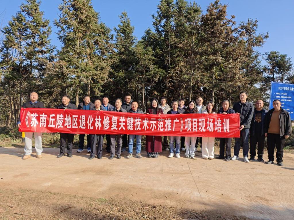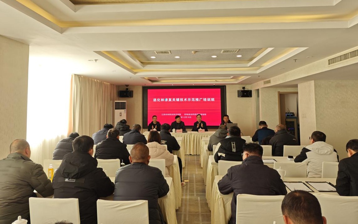 为切实提升基层退化林修复项目实施质效,推动先进修复技术落地生根,近日,由江苏农林职业技术学院风景园林学院携手盱眙县自然资源和规划局联合主办的“退化林修复关键技术示范推广培训班”在盱眙县顺利开班。江苏农林职业技术学院相关教师、盱眙县国有林场技术骨干及2025年退化林修复项目实施单位技术负责人共40余人参加了此次培训。