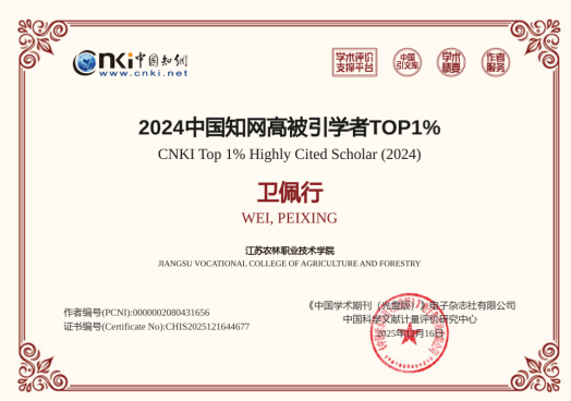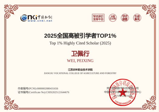 近日,中国知网中国科学文献计量评价研究中心发布《2025全国高被引学者榜单》,我院卫佩行博士再次入选“2025中国知网高被引学者TOP1%”,是全国同类职业院校中为数不多的连续两年入选TOP1%的学者之一。卫佩行博士及所在木材科学科组团队长期从事生物质工程材料、家具材料力学、家具设计等方向研究,多篇学术成果得到同行专家肯定并引用。其入选不仅是对个人及团队学术成果的肯定,也是对学校学术产出质量的高度认可。