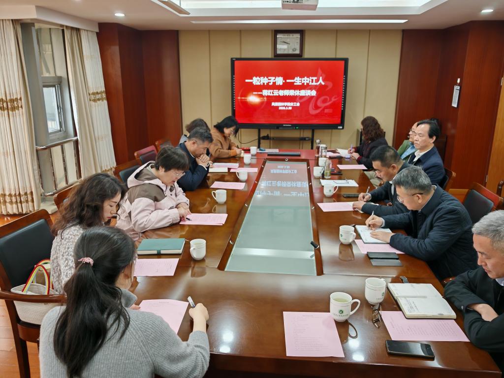3月30日上午,风景园林学院分工会在综合楼8楼会议室,隆重举行“一粒种子情・一生中江人”退休教师荣休座谈会。学院党委副书记、校长潘永圣,人事处、离退休办、工会及风景园林学院相关负责人,中江种业董事长李嘉、总经理刘永健等公司领导班子成员出席活动,座谈会由风景园林学院院长刘玉华主持。