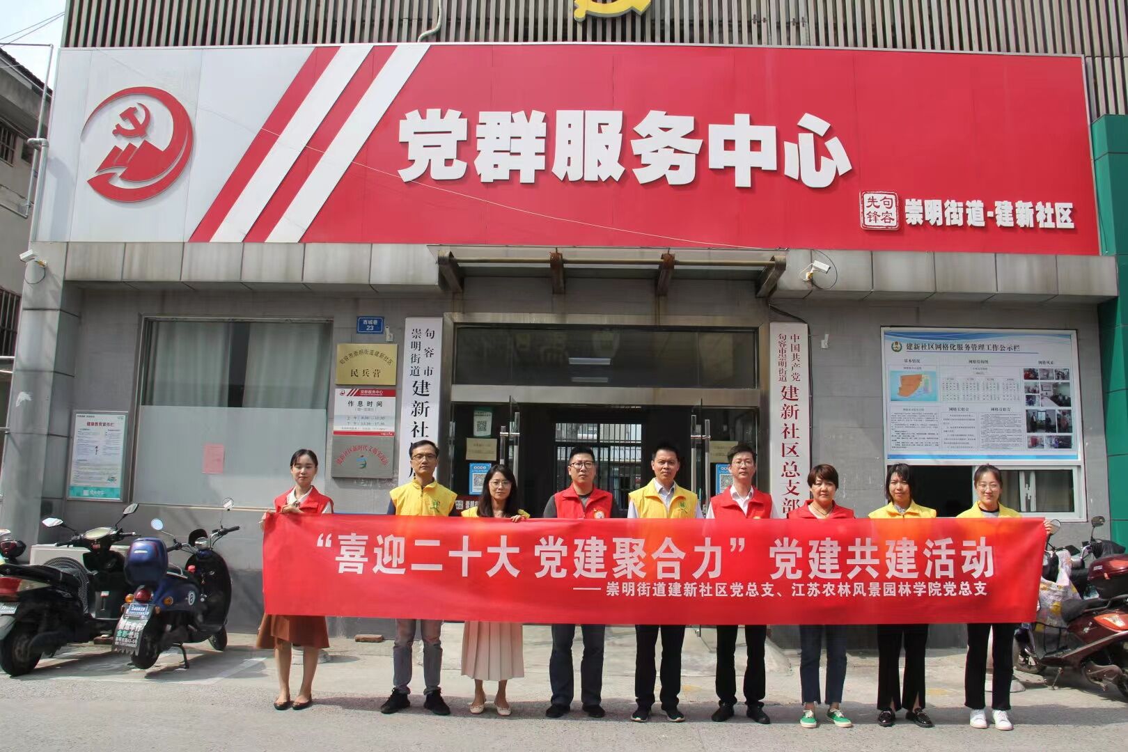 为贯彻落实“党旗‘镇’红,一线建功”,以实际行动迎接党的二十大召开。9月30日下午,风景园林学院党总支与崇明街道建新社区开展党建共建活动。建新社区党委书记、主任蒋铭午,我院党总支书记熊伟、教工第一党支部书记陈慧敏、学生党支部书记唐冬芬等参加活动。
