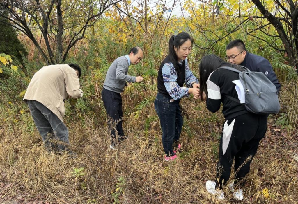 以技术服务地方建设,充分发挥专业特长,教工第二支部组织了植物及有害生物防治方向的教师,参与了全国林草湿生态系统外来入侵物种普查工作。11月11日下午,风景园林学院教工第二党支部组织党员教师宋微、陈瑞旭、曹燕妮、邱秀文、吴文浩带4名学生去到淮安市淮安区开展普查工作。踏查前,老师们依据本区域外来入侵物种普查名单,查阅历史发生资料,了解当地外来入侵物种的种类、分布和发生情况。踏查时,老师和同学们克服了地形、阴雨降温等不利条件,根据当地主要森林、草原、湿地生态系统分布,选择了具有代表性,避免重复,且覆盖当地典型生境的区域设计踏查路线,充分利用林区、草原、自然保护地中现有的道路作为踏查交通条件,重点调查了自然保护地、受人为和自然干扰严重的生态系统、历史上外来入侵物种频发的区域等。本次踏查发现了多种全国性入侵生物种类,下一步将对重点区域进行详细调查,调查结果将有助于有害生物的早期预警狙击、应急控制、阻断扑灭、可持续综合防御控制。