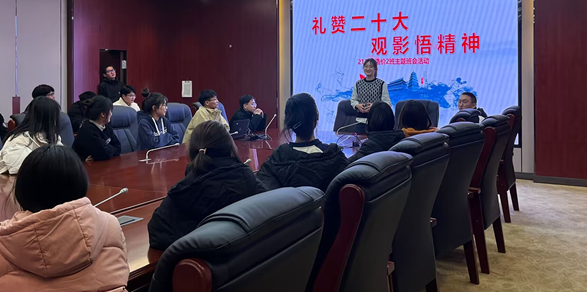 主题分享会,师生共学习。师生共同进行二大精神专题学习,认真学习二十大报告中的新观点、新思想,深入开展学习研讨,积极分享个人感受,号召大家争做新时代好青年。