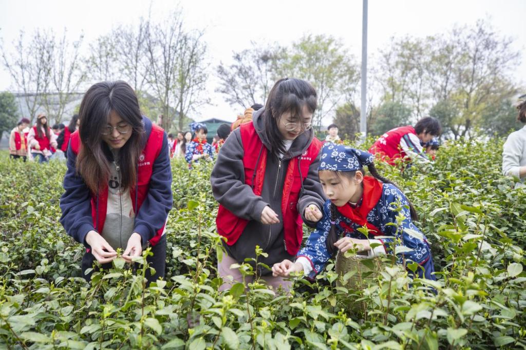 正值春茶开采季,为引导青少年崇尚劳动、热爱劳动,传承耕读文化,弘扬劳动精神,3月31日,风景园林学院的师生牵手句容市春城实验学校走进江苏茶博园,开展“以茶知礼,以劳育人”耕读劳动教育主题实践活动。