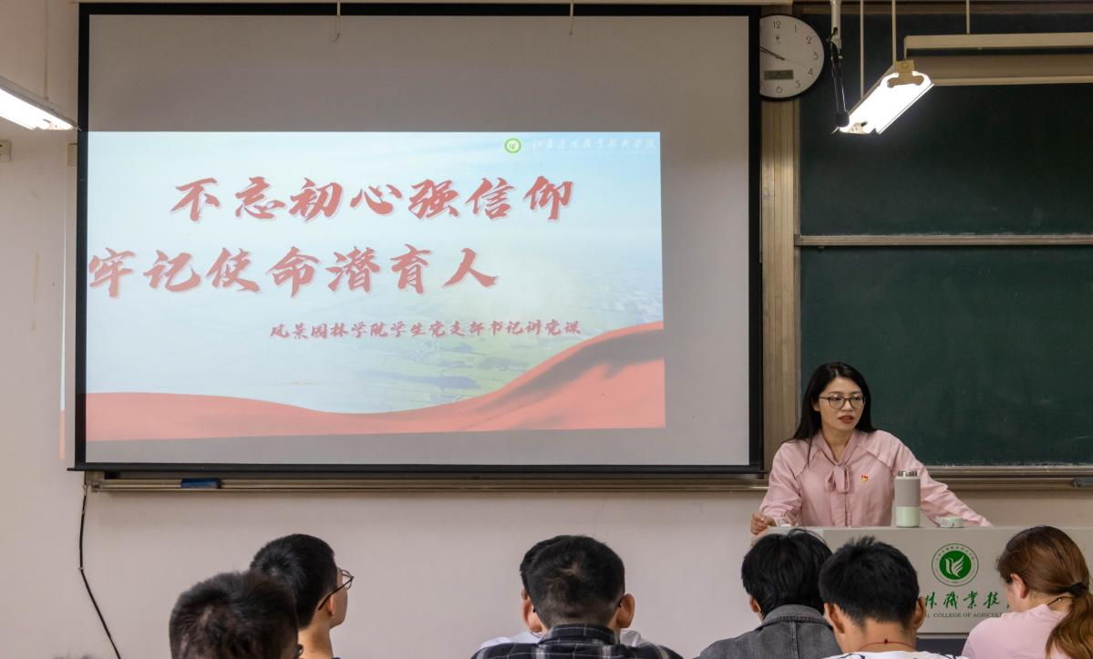 为学习贯彻习近平新时代中国特色社会主义思想主题教育,进一步加强入党积极分子对党的基本知识、基本理论和基本路线的学习。5月25日上午,风景园林学院学生党支部书记唐冬芬在J1A301讲授专题党课,支部积极分子参与。